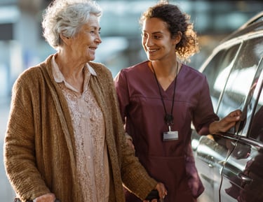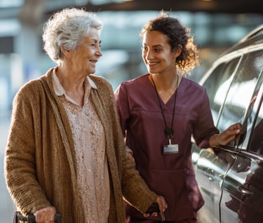 Trusted caregiver escort and assistance during trips, appointments, or longer-distance transportation — ensuring safety, comfort, and peace of mind while away from home.