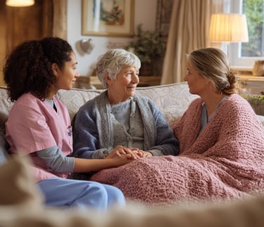 Compassionate, non-medical end-of-life support focused on comfort, dignity, and emotional well-being — providing relief for clients and their families during this important stage of care.