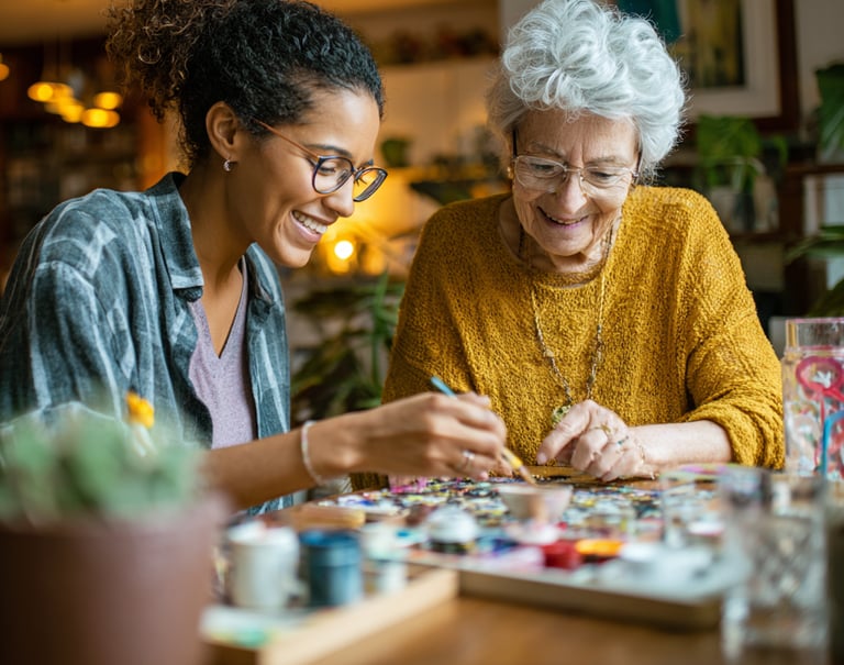 Attentive caregiver assistance with daily personal care needs — such as grooming, dressing, and mobility — along with support in hobbies and leisure activities like arts and crafts, gardening, games, reading, or music, to foster dignity, joy, and overall well-being.